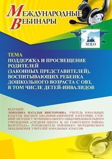 Международный вебинар «Поддержка и просвещение родителей (законных представителей), воспитывающих ребенка дошкольного возраста с ОВЗ, в том числе детей-инвалидов»