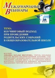 Международный вебинар «Коучинговый подход при проведении родительских собраний в общеобразовательной школе»