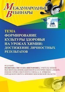 Международный вебинар «Формирование культуры здоровья на уроках химии: достижение личностных результатов»