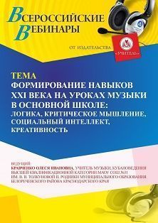 Вебинар «Формирование навыков XXI века на уроках музыки в основной школе: логика, критическое мышление, социальный интеллект, креативность»