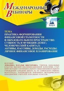 Международный вебинар «Практика формирования финансовой грамотности в образовательном пространстве: сущность и функции денег; человеческий капитал; активы, пассивы, доходы, расходы; личное финансовое планирование»