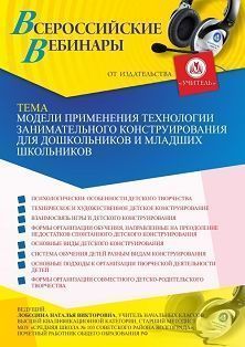 Вебинар «Модели применения технологии занимательного конструирования для дошкольников и младших школьников»