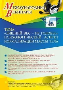 Международный вебинар «”Лишний вес – из головы”: психологический аспект нормализации массы тела»