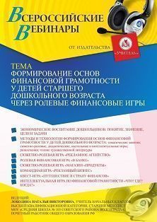 Вебинар «Формирование основ финансовой грамотности у детей старшего дошкольного возраста через ролевые финансовые игры»