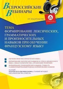 Вебинар «Формирование лексических, грамматических и произносительных навыков при обучении французскому языку»