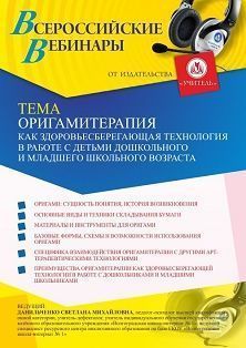 Вебинар «Оригамитерапия как здоровьесберегающая технология в работе с детьми дошкольного и младшего школьного возраста»