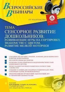 Вебинар «Сенсорное развитие дошкольников: развивающие игры на сортировку, знакомство с цветом, развитие мелкой моторики»