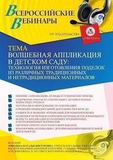 Вебинар «Волшебная аппликация в детском саду: технология изготовления поделок из различных традиционных и нетрадиционных материалов»