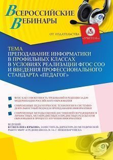 Вебинар «Преподавание информатики в профильных классах в условиях реализации ФГОС СОО и введения профессионального стандарта “Педагог”»