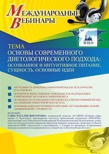 Международный вебинар «Основы современного диетологического подхода: осознанное и интуитивное питание, сущность, основные идеи»