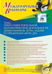 Международный вебинар «Опыт самостоятельной математической деятельности дошкольников: игры, задачи и упражнения (ФГОС ДО)»