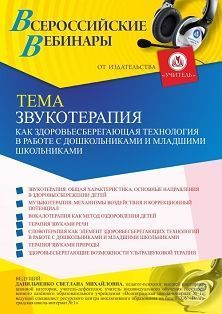 Вебинар «Звукотерапия как здоровьесберегающая технология в работе с дошкольниками и младшими школьниками»