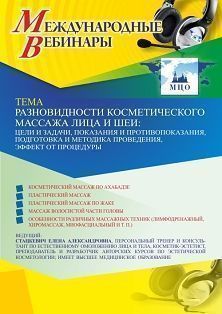 Международный вебинар «Разновидности косметического массажа лица и шеи: цели и задачи, показания и противопоказания, подготовка и методика проведения, эффект от процедуры»