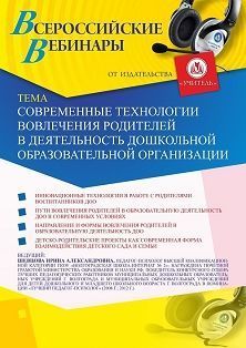 Вебинар «Современные технологии вовлечения родителей в деятельность дошкольной образовательной организации»