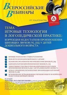 Вебинар «Игровые технологии в логопедической практике: коррекция недостатков произношения шипящих звуков [ч], [щ] у детей дошкольного возраста»