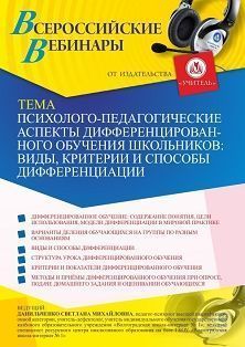 Вебинар «Психолого-педагогические аспекты дифференцированного обучения школьников: виды, критерии и способы дифференциации»