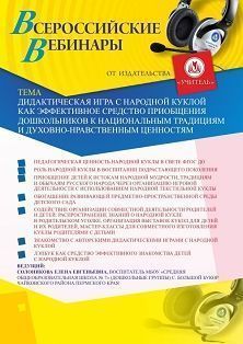 Вебинар «Дидактическая игра с народной куклой как эффективное средство приобщения дошкольников к национальным традициям и духовно-нравственным ценностям»