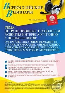 Вебинар «Нетрадиционные технологии развития интереса к чтению у дошкольников: буктрейлер, досуговое (домашнее) чтение, буккроссинг, мнемотехника, проектная технология, технология проведения массовых мероприятий»