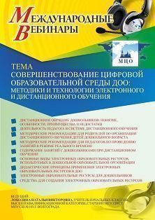 Международный вебинар «Совершенствование цифровой образовательной среды ДОО: методики и технологии электронного и дистанционного обучения»