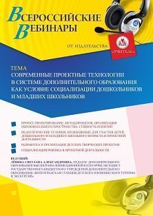 Вебинар «Современные проектные технологии в системе дополнительного образования как условие социализации дошкольников и младших школьников»