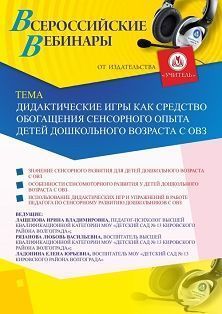 Вебинар «Дидактические игры как средство обогащения сенсорного опыта детей дошкольного возраста с ОВЗ»