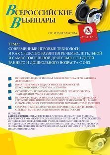 Вебинар «Современные игровые технологии как средство развития речемыслительной и самостоятельной деятельности детей раннего и дошкольного возраста с ОВЗ»
