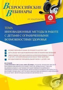 Вебинар «Инновационные методы в работе с детьми с ограниченными возможностями здоровья»