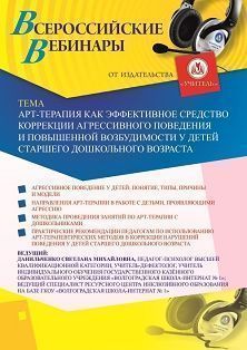 Вебинар «Арт-терапия как эффективное средство коррекции агрессивного поведения и повышенной возбудимости у детей старшего дошкольного возраста»