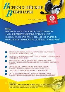 Вебинар «Развитие саморегуляции у дошкольников и младших школьников в разных видах деятельности: занимательные игры, задания, упражнения, диагностический инструментарий»