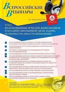 Вебинар «Малоподвижные игры для дошкольников и младших школьников: цели, задачи, особенности, области применения»