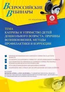 Вебинар «Капризы и упрямство детей дошкольного возраста: причины возникновения, методы профилактики и коррекции»
