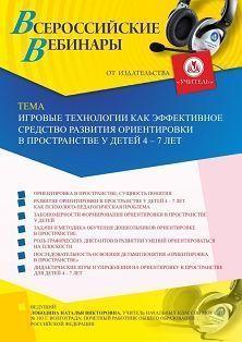 Вебинар «Игровые технологии как эффективное средство развития ориентировки в пространстве у детей 4 – 7 лет»