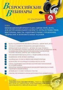 Вебинар «Инновационный проект в ДОО “Здравствуй, лето” для детей дошкольного возраста: игры-путешествия, викторины, квесты, оздоровительные упражнения, творческие и познавательные задания»