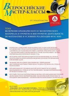 Всероссийский мастер-класс «Включение краеведческого и экологического материала в урочную и внеурочную деятельность по математике в условиях реализации ФГОС НОО»