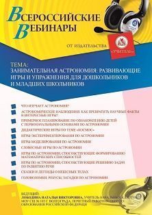 Вебинар «Занимательная астрономия: развивающие игры и упражнения для дошкольников и младших школьников»