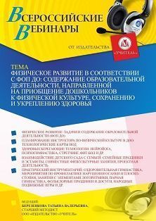 Вебинар «Физическое развитие в соответствии с ФОП ДО: содержание образовательной деятельности, направленной на приобщение дошкольников к физической культуре, сохранению и укреплению здоровья»