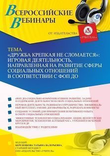 Вебинар «“Дружба крепкая не сломается”: игровая деятельность, направленная на развитие сферы социальных отношений в соответствии с ФОП ДО»