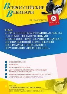 Вебинар «Коррекционно-развивающая работа с детьми с ограниченными возможностями здоровья в рамках инновационной комплексной программы дошкольного образования “Вдохновение”»