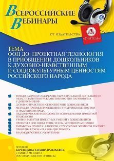 Вебинар «ФОП ДО: проектная технология в приобщении дошкольников к духовно-нравственным и социокультурным ценностям российского народа»