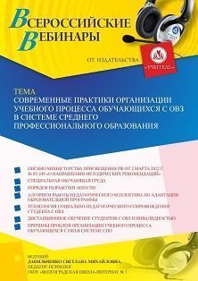 Вебинар «Современные практики организации учебного процесса обучающихся с ОВЗ в системе среднего профессионального образования»