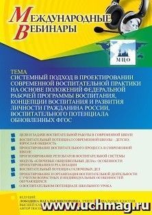 Вебинар «Системный подход в проектировании современной воспитательной практики на основе положений Федеральной рабочей программы воспитания, Концепции воспитания и развития личности гражданина России, воспитательного потенциала обновленных ФГОС»