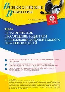 Вебинар «Педагогическое просвещение родителей в учреждении дополнительного образования детей»
