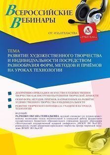 Вебинар «Развитие художественного творчества и индивидуальности посредством разнообразия форм, методов и приёмов на уроках технологии»