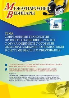 Международный вебинар «Современные технологии профориентационной работы с обучающимися с особыми образовательными потребностями в системе высшего образования»