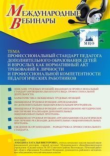 Международный вебинар «Профессиональный стандарт педагога дополнительного образования детей и взрослых как нормативный акт требований к личности и профессиональной компетентности педагогических работников»