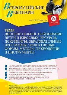 Вебинар «Дополнительное образование детей и взрослых: ресурсы, документы, образовательные программы, эффективные формы, методы, технологии и инструменты»