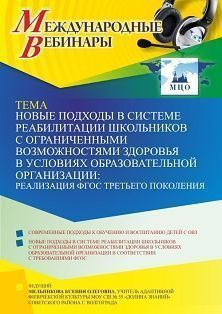 Международный вебинар «Новые подходы в системе реабилитации школьников с ограниченными возможностями здоровья в условиях образовательной организации: реализация ФГОС третьего поколения»