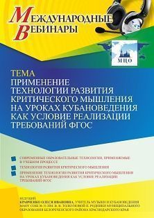 Международный вебинар «Применение технологии развития критического мышления на уроках кубановедения как условие реализации требований ФГОС»