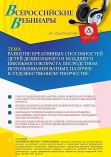 Вебинар «Развитие креативных способностей детей дошкольного и младшего школьного возраста посредством использования ватных палочек в художественном творчестве»
