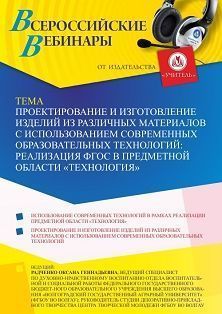 Вебинар «Проектирование и изготовление изделий из различных материалов с использованием современных образовательных технологий: реализация ФГОС в предметной области “Технология”»